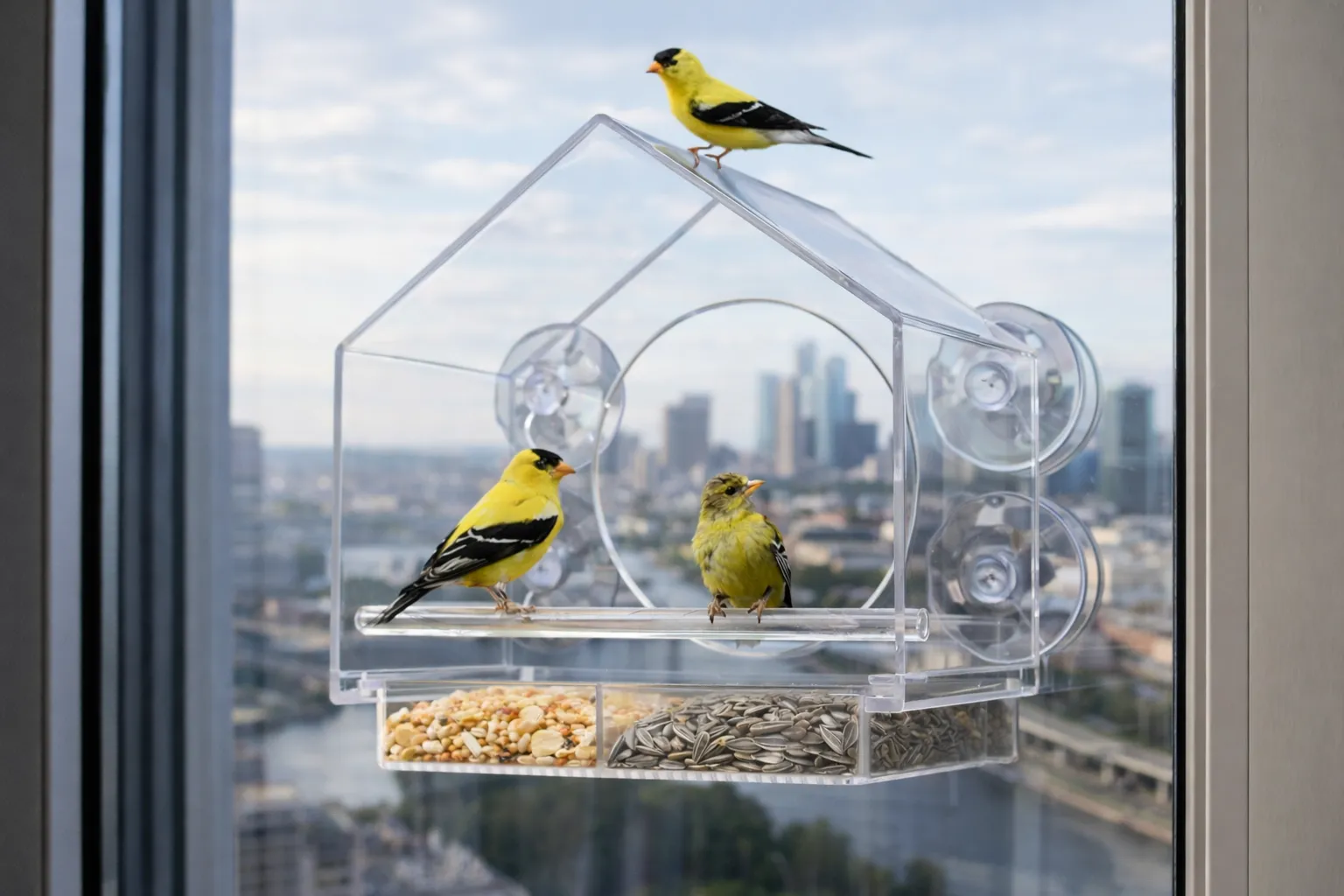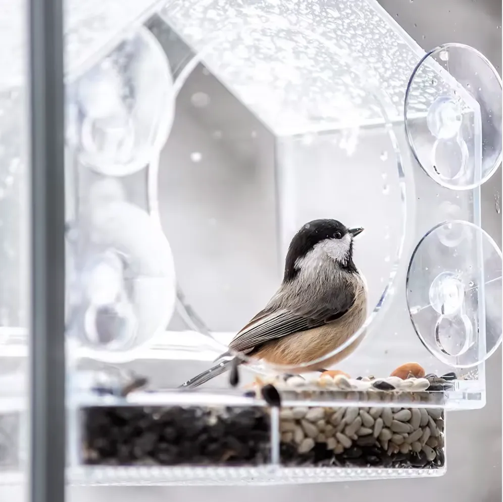 Дуже мила годівничка! Я поставила її на кухонне вікно — тепер кожного ранку п’ю каву і дивлюся на синичок. Присоски тримаються добре, виглядає акуратно й сучасно.